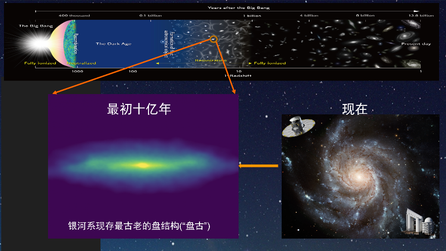 像银河系这样同时具有盘和晕的漩涡星系,是先形成盘还是晕?这是理解星系如何起源和早期宇宙环境的关键问题。过去的观测发现,绝大部分银河系外盘星系的年龄小于110亿年,而对于银河系,长期以来人们也普遍认为,银晕是银河系最古老的结构,而银盘则晚于银晕,于大约100亿年前形成。