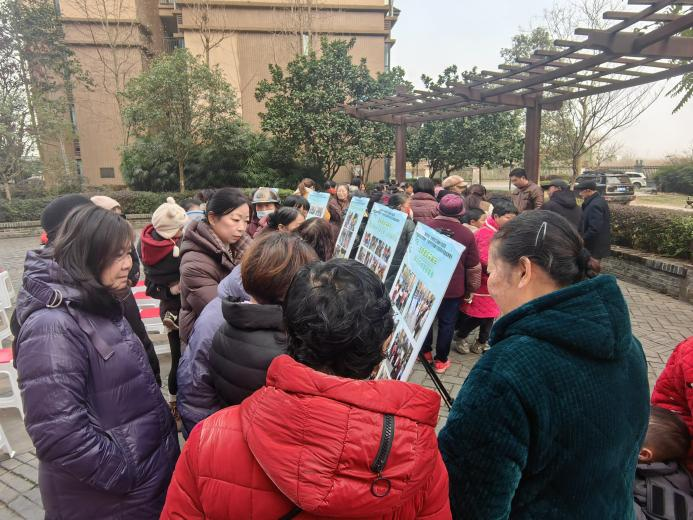 上午九点整,活动正式进入第一阶段——项目总结与分享。项目负责社工冉丹率先登场,两侧图文并茂的展板宛如一轴缓缓展开的时光画卷,直观呈现着焕新计划的每一步足迹。社工通过详实的数据、生动的图片与真挚的讲述,深情回顾了项目启动一年来的点点滴滴:从小区闲置角落的微更新、公共设施的修缮升级,到节日邻里宴、亲子趣味赛等一系列丰富多彩的文化活动,每一个数字背后都凝结着工作人员与居民的汗水智慧,每一张照片都定格了湖畔湾小区从“住有所居”到“居有所乐”的可视化变迁。居民们凝神倾听,不时点头称许,眼神中满是对家园变化的认可与自豪。