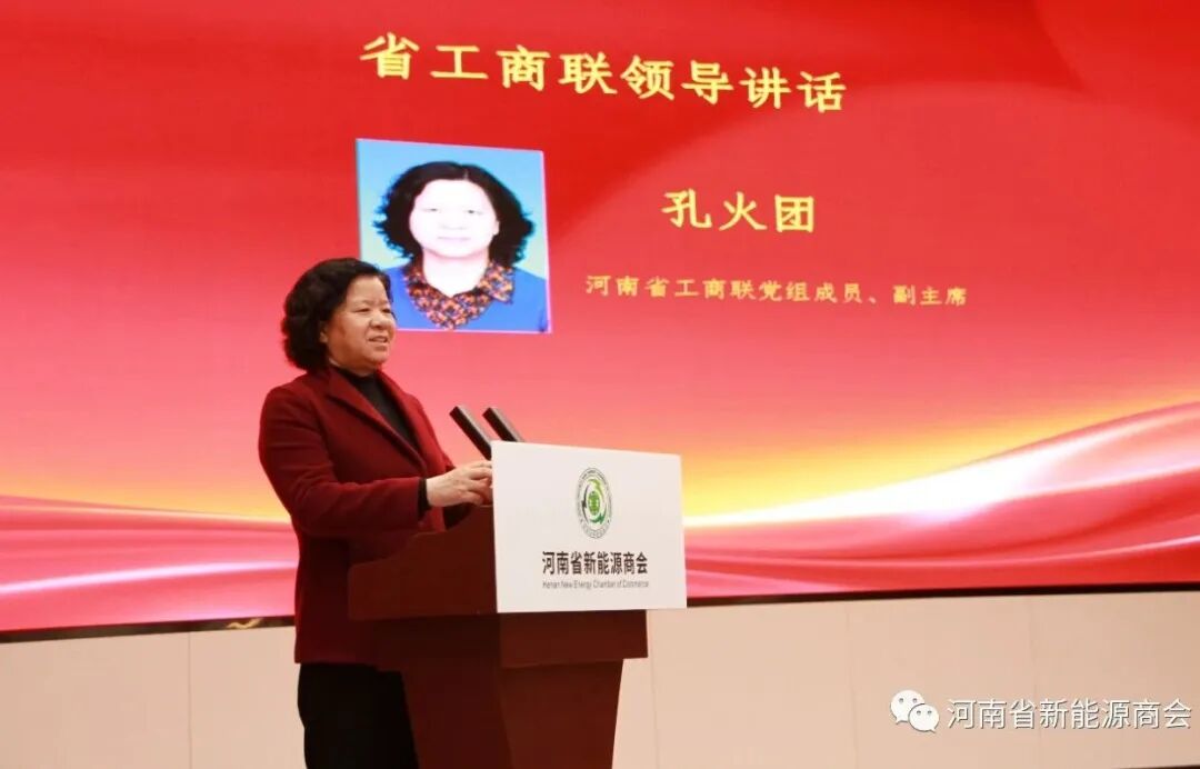 孔火团在讲话中说:河南省新能源商会积极服务会员企业和全省新能源行业发展,在有关重大事件和重大活动中发挥了积极的作用,受到了党委政府和社会各界的好评,得到了新能源企业的拥护和支持。省工商联会作为主管部门,会一如既往地关心、关注、支持河南省新能源商会和新能源企业的发展。孔火团副主席对新能源商会的发展提出了几点希望:一、坚持党的领导,践行习近平新时代中国特色社会主义思想,成为精神面貌积极向上的社会团体;二、围绕政府战略,助力会员发展,推动科技创新,助力河南发展;三、加强自身建设,扩大影响,合规经营,促进社会进步。