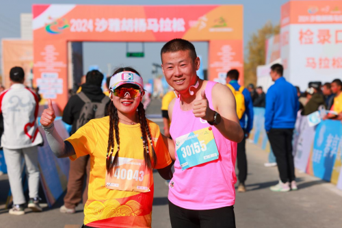 温宿县参赛选手石亮说:“今天能在沙雅参加本次的马拉松,非常开心,也有很多金色的胡杨,非常的美,也实现了我这一次最好的半马PB(个人最佳成绩),从1小时45分到1小时44分,整个的体验非常的好,接下来应该会在这边玩一下,品尝一下当地的美食。”