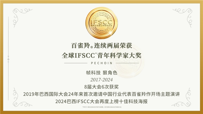 近日,第34届IFSCC国际化妆品科技联盟大会在巴西伊瓜苏圆满落幕。这场汇聚全球顶尖品牌与科研人才的盛会,再次见证了百雀羚的卓越风采。