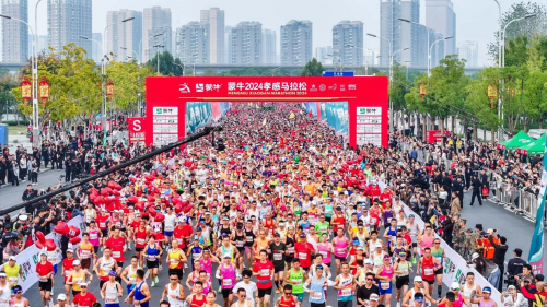 “孝”傲江湖,一马当先。10月27日7时30分,蒙牛2024孝感马拉松在孝感市文化中心鸣枪起跑。来自中国、美国、日本、澳大利亚、巴基斯坦、肯尼亚、埃塞俄比亚、越南等8个国家的2万名选手参赛。奥运冠军程菲、刘蕙瑕;孝感籍世界冠军万雅琦、亚运冠军汪洋、全国锦标赛冠军张茂林、学青会冠军严鑫参与赛事领跑。赛事通过孝感电视台全程直播,并通过多个网络平台同步直播。