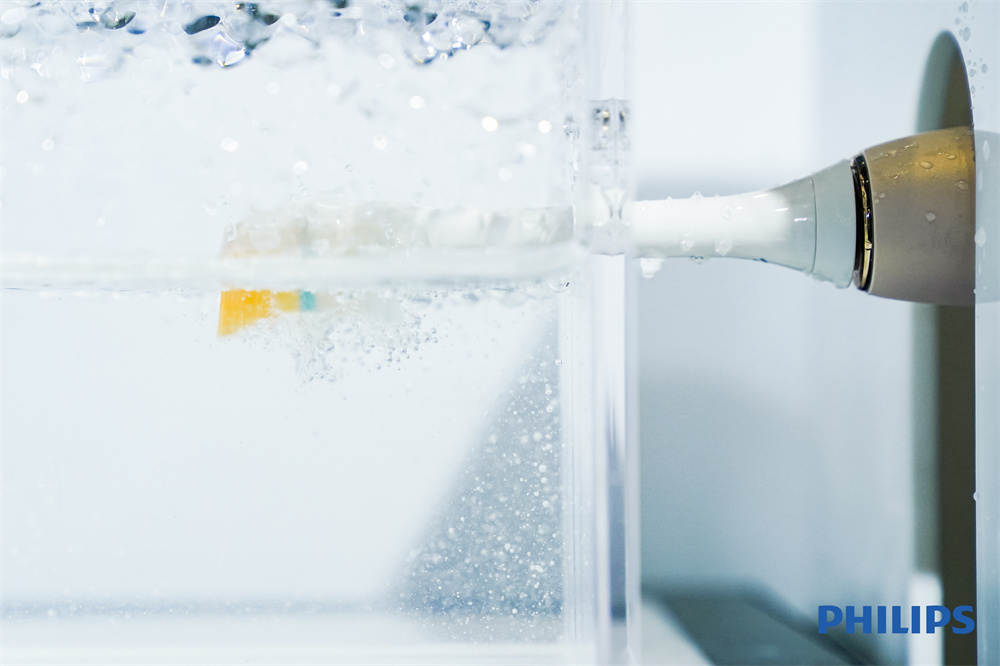 通过展台的对比实验,观众可亲眼见证微泡水流科技稳定而强劲的水流清洁力,刷毛精准摆动,感受温和且高效的口腔清洁体验。