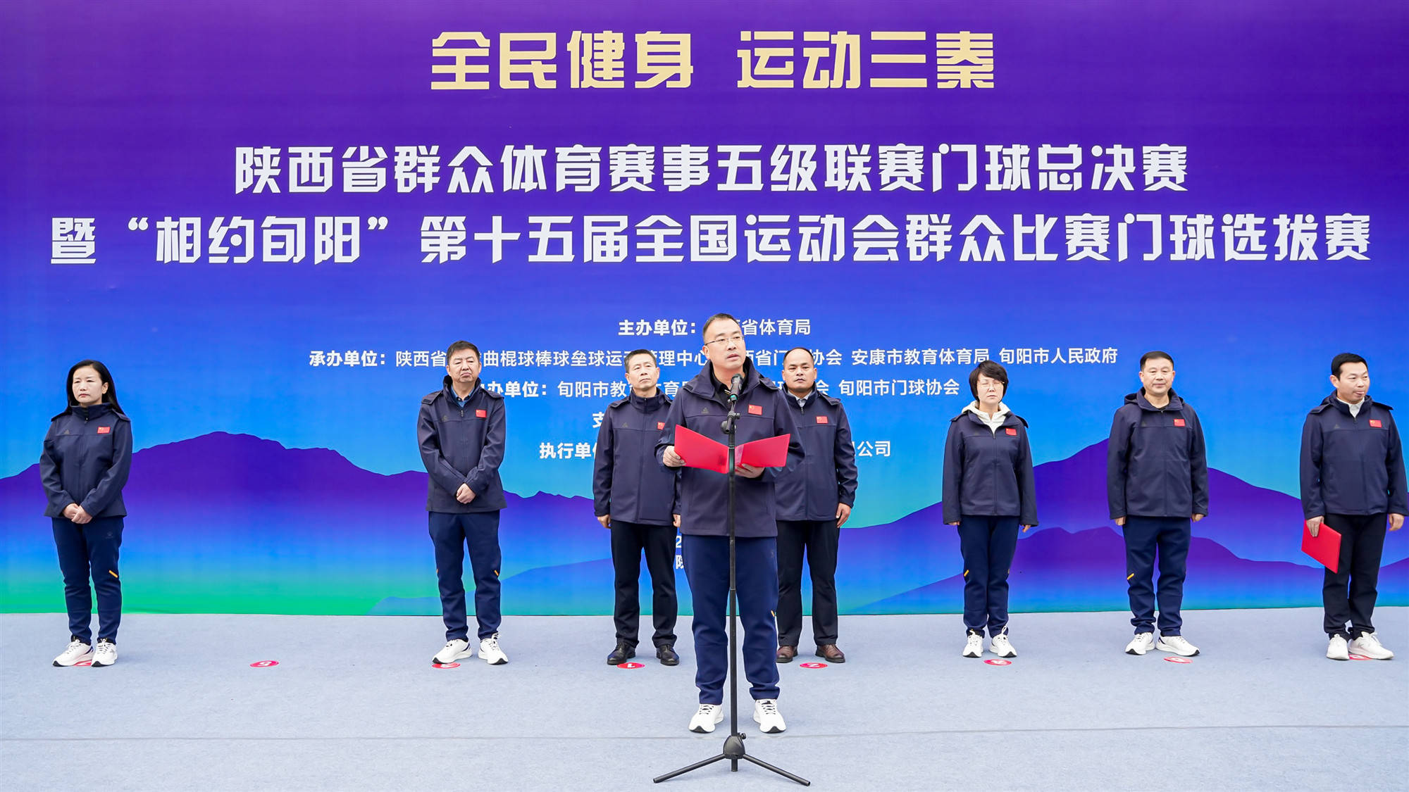 11月8日,“全民健身 运动三秦”陕西省群众体育赛事五级联赛门球总决赛暨“相约旬阳”第十五届全国运动会群众比赛门球选拔赛在安康旬阳市体育场隆重开赛!陕西省体育局群体处三级调研员刘辉、陕西省手球曲棍球棒球垒球运动管理中心主任方晓刚、安康市教育体育局二级调研员胡登明、旬阳市委宣传部部长姚静、旬阳市人民政府常务副市长刘仁卫、旬阳市人大常委会副主任刘连文、旬阳市政协副主席吕晓静、旬阳市教育体育局局长张靖华出席开幕仪式。