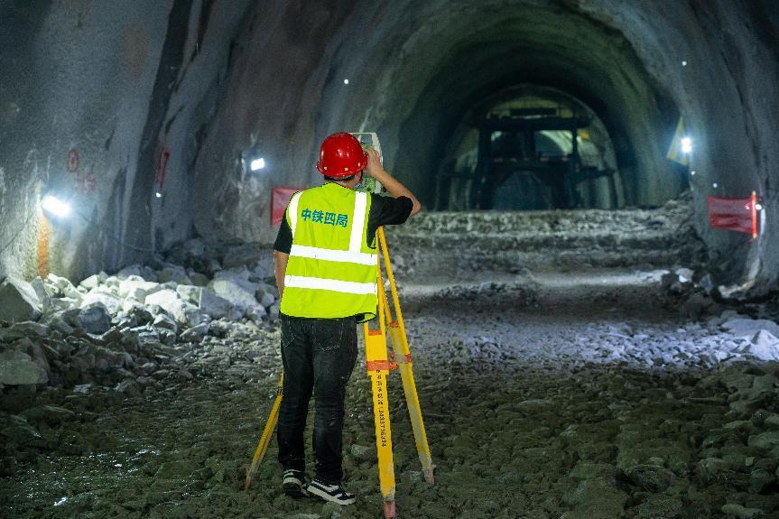 在揭惠铁路公司统筹安排下,施工方中铁四局结合现场实际,不断优化施工组织方案,科学合理配置各项资源,有效保障隧道施工的顺利进行。面对复杂地质情况带来的施工难题,技术团队综合利用监控量测、超前地质预报等技术手段超前研判地质情况,制定科学支护措施,始终遵循“弱爆破、短进尺、强支护、早封闭、勤量测”的黄金施工法则,不断加强钻爆、出渣、支护等各项工序衔接,并通过细致调整台阶高度、优化钻爆炮眼布局及角度,辅以聚能管光面爆破技术,成功穿越2个断裂带、4个软弱围岩地段等地质复杂区域。