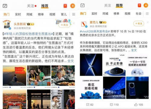 通过拆解vivo X200系列的传播动作,不难发现,在智能手机市场供给饱和、用户疲劳度上升的背景下,原生广告已成为关键传播工具。