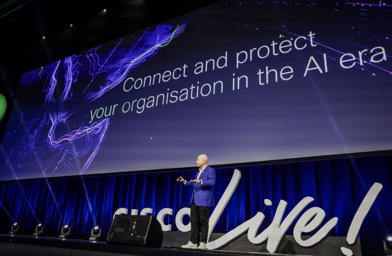 思科亚太、日本及大中华区总裁Dave West在Cisco Live 墨尔本活动上强调在人工智能时代里,企业连接和网络安全的重要性。