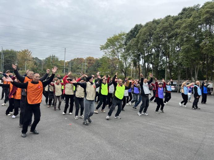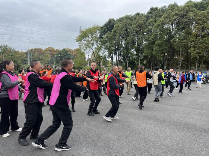随后,在四川芒果启能体育文化发展有限公司王教练的带领下,居民们进行了热身操活动。热身操动作简单易学,既能活动身体各个关节,又能提高身体的柔韧性和协调性。居民们跟着志愿者的节奏,认真地做好每一个动作,为接下来的运动项目做好充分的准备。