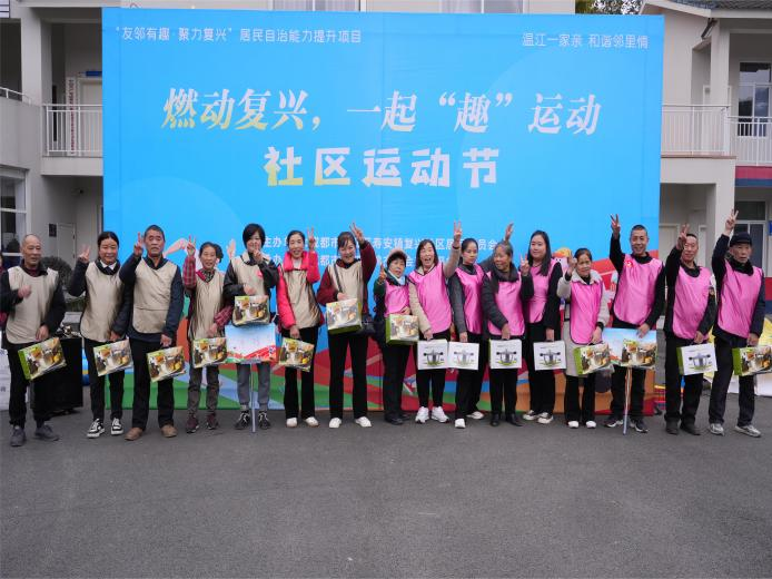 为进一步丰富辖区居民的体育文化生活,增进邻里之间的交流与融合,提升社区活力和凝聚力,营造“我运动、我健康、我快乐的浓厚氛围”。11月19日,寿安镇复兴社区联合成都市温江区鸿杰社会工作服务中心开展“燃动复兴,一起“趣”运动”社区运动节。在社区的精心筹备与社区居民的热情参与下,这场运动会不仅加深看邻里间的情谊,更将全民健身的理念深植人心。