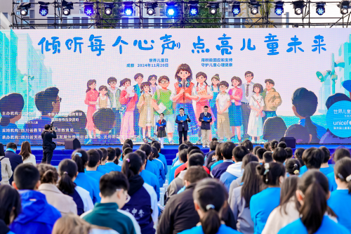 今年世界儿童日相关活动持续近一个月,旨在增加公众对儿童心理健康的了解,呼吁倾听儿童的心声,包括他们在校园中遇到的心理健康挑战,以及他们认为有效的解决方案。在11月20日世界儿童日当天,联合国儿童基金会与教育部在四川天府新区第十一学校联合主办了今年的世界儿童日主题活动,通过呈现由学生自己创作的心理健康主题短剧等内容,反映今年世界儿童日的主题内容。本次活动通过多个数字平台进行了直播。