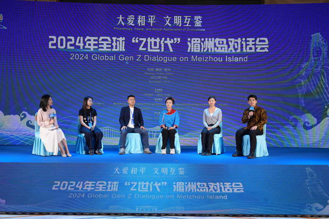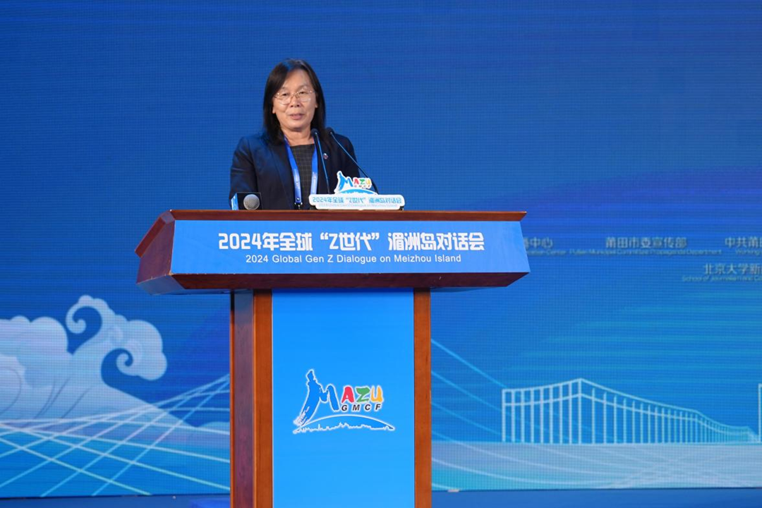 11月18日下午,以“大爱和平 文明互鉴”为主题的2024年全球“Z世代”湄洲岛对话会在莆田市湄洲岛妈祖文化论坛会址举行。莆田市人民政府副市长林韶雯、中国日报社21世纪报社总编辑曾庆锴、北京大学校务委员会副主任叶静漪、北京大学新闻与传播学院党委书记唐金楠、中国传媒大学人类命运共同体研究院院长李怀亮等领导和嘉宾出席活动。来自五大洲20多个国家的30余位“Z世代”青年代表,高校、新闻界等共计约200人参加活动。2024年“‘Z世代’讲好妈祖故事”活动在现场同步启动。