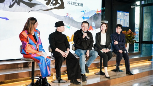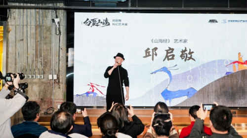 艺术家邱启敬先生在发言中提到,《山海经》是华夏民族的神话记忆,堪称上古时期的元宇宙,一个精神王国;中国古人在数千年前就构建了一部具有丰富神灵和人物关系,覆盖了人性、社会观、宇宙观的思想体系。将这个神话王国重新呈现在当代社会场景中,不仅仅是在做简单的图解和形象复原,而是致力于以当代的视觉表达方式将古老的王国带回当代社会。本次展览中,山海神兽与科幻场景,实景意向与数字意向之间进行了有机融合,让艺术的表达进入科幻语境。期待未来能有更多这样的机会,用中国的技术讲好中国的故事,传承中国的文化。