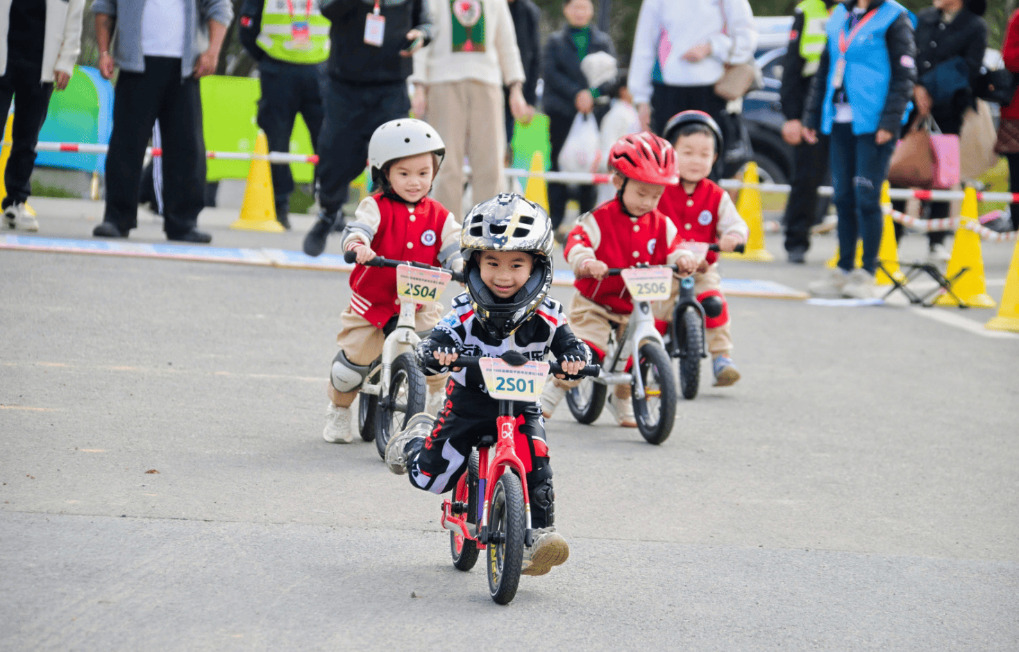 与成年组的爬坡竞技同时进行的,还有在云和梯田游客中心的环浙萌娃平衡车比赛,比赛吸引了来自全国各地100个亲子家庭参与。