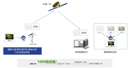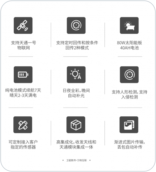 摄像头拍到变化画面后,通过天通卫星回传到后端,即使在无信号或弱信号区域也能稳定工作。