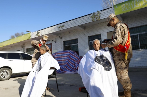 来自32147部队红星服务队的战士们,当听说要给老兵送慰问,纷纷踊跃报名积极响应,他们精心筹划为老兵带来了武术表演,并和歌手一起为老兵合唱军旅歌曲,还为老兵进行义务理发,为老兵献上他们最真挚的爱意,服务队带队负责人薛旭说到:“1989年3月,在共青团中央‘向社会派遣青年志愿者’的号召下,连队组建了学雷锋“红星服务队”。35年过去了,连队也先后被表彰为“全国拥政爱民模范单位”、“全军学雷锋先进单位”、“全国五四红旗团支部”。在国际志愿者日到来之际,我们作为子弟兵,能再次给老班长带来节目,给他们带来欢乐,我们感到无比光荣和自豪”。
