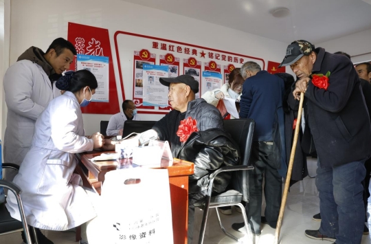 接着,由宝鸡第三医院精心组织,为老兵逐一进行了体检,为老兵量血压、测血糖,在该医院开来体检健康车上,为老兵测心电和拍片。来自该院的心内科宁保红主任、神经内科李建强主任、内分泌科王晓英主任、老年病科杨少敏主任还为老兵进行了义诊,同时还为就近的前来义诊村民,进行了体检义诊,并为大家发放了100份义诊宣传物资。