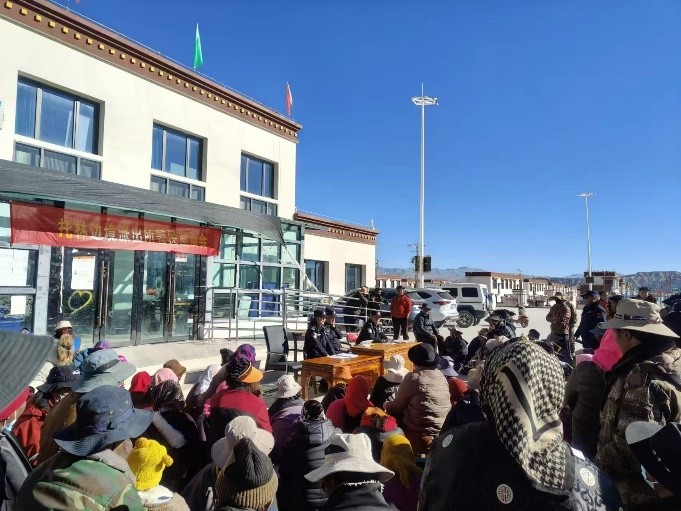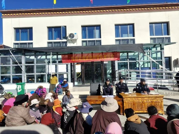 活动当天,玛朗安置点村委会前人头攒动,群众们聚集在宣讲桌前,等待着警民交流座谈和普法宣传教育。派出所所长普布扎西向群众汇报了托林边境派出所工作职责和履职情况,为拉近警民感情、交流社情民意打好了基础。随后,两名宣讲民警用群众易于理解的语言分别宣讲《西藏自治区边境管理条例》《治安管理处罚法》和交通安全知识,结合典型案例以案释法、以案普法,让法律知识以引人深思、令人警醒的典型案例为载体深入群众脑海,群众们认真聆听、积极问答,现场交流研讨的氛围热烈。