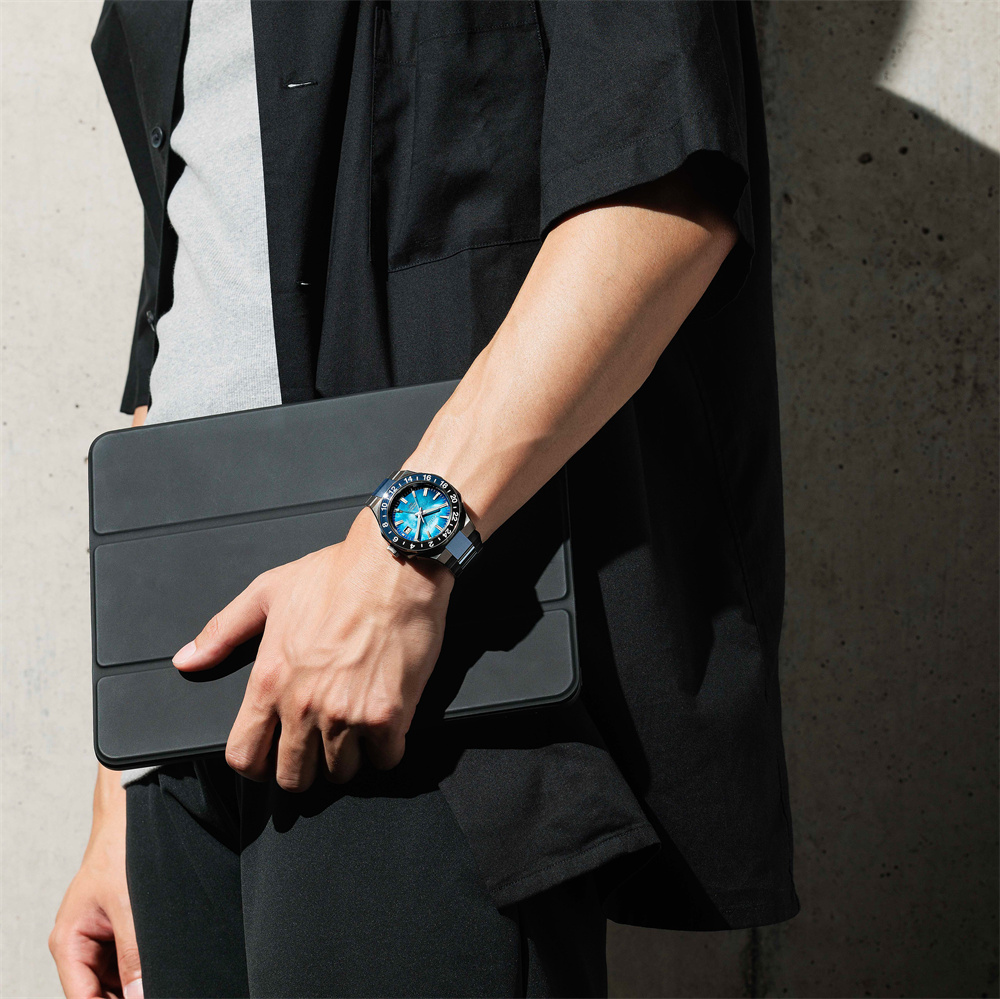 百年前还车马不便,如今“空中飞人”已成很多人的常态。NB6036-52N搭载具备GMT功能的Cal.9054机械机芯,动力储存长达50小时,每日误差仅在−10至+20秒之间。通过GMT功能可自由调整时针,以1小时为单位更改主表盘的时间,不影响分针、秒针或24小时针,无论是旅途还是商务出行,都能快速设定当地时间。JIS 2型防磁性能,可从容应对现代社会的各种使用场景。即使接近智能手机、平板电脑等产生磁性的设备,也会保持稳定的走时精度。