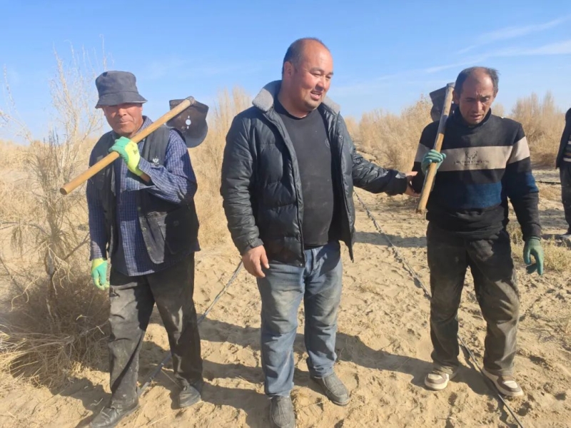 2019年,当卡迪尔·吾斯曼亲眼目睹沙漠日益侵蚀绿地时,他决定要做出改变。“我不希望我的家乡和子孙后代被漫漫黄沙围绕。”他放弃了原本的红枣批发生意,转而投身于治沙事业中。