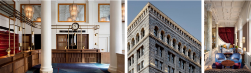 走进酒店高耸的入口,就会成为宾夕法尼亚区过去、现在和未来的一部分。这座建筑建于1891年,是里格斯国家银行(Riggs National Bank)的总部,是理查森罗马式建筑的典范,被称为“总统银行”(Bank of Presidents),它不仅位于第9街和F街的交汇处,也是美国历史上的一个十字路口。为了向这座建筑的辉煌历史致敬,酒店的181间客房与套房均以私人保险箱为设计灵感,酒店的每个角落都流露出黄金银行时代的故事韵味。酒店的核心区域是Café Riggs,这是一家现代化、适合各种场合的餐厅,以及由国际知名的Mr Lyan团队打造的除欧洲外首家Silver Lyan酒吧,位于原银行金库的地下空间。酒店设有四间第一夫人套房,每间套房的灵感均来自四位前第一夫人的喜好。