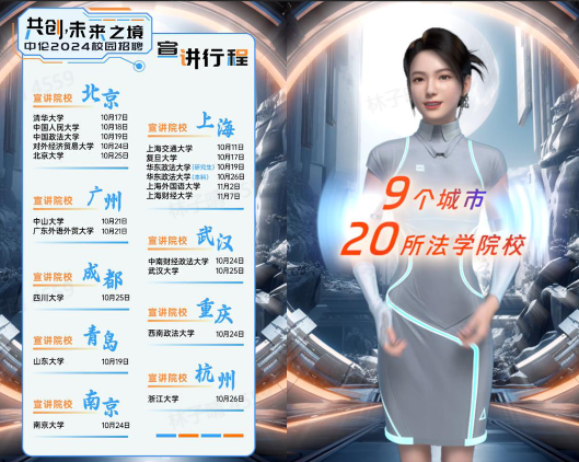 除上述应用场景外,招聘视频也成为数智化转型的创新一环。在2024年的校园招聘季,中伦律所打破传统招聘的局限,通过有言平台实现校园招聘的视频化升级。运用3D数字人技术生动展示了企业亮点和岗位详情。通过视频化的招聘宣传,不仅提升了岗位吸引力,还获得了更多优秀人才的青睐,收获了卓越的招聘成效。