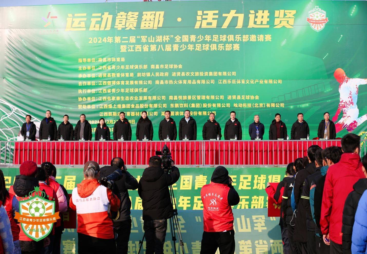 12月28日,“运动赣鄱•活力进贤”2024年第二届“军山湖杯”全国青少年足球俱乐部邀请赛暨江西省第八届青少年足球俱乐部赛在进贤县前坊镇佐家寨生态乐园举行。来自浙江杭州、广西桂林、广西贺州、湖南永州及江西省内合计30支青少年足球劲旅参加比赛,近500名青少年足球精英竞逐绿茵场。