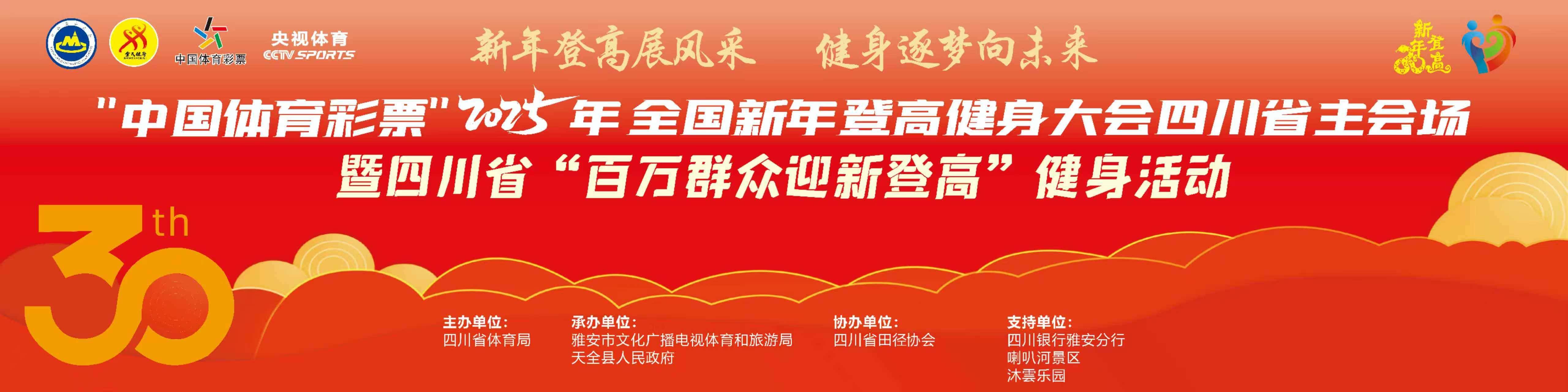 2025年四川省“百万群众迎新登高”健身活动在雅安市天全县设省级主会场,同时还在广元市朝天区、宜宾市翠屏区、巴中市、甘孜州和凉山州喜德县等5个地区设立省级分会场,以五区协同、全省联动的方式,在元旦、春节期间掀起登高向新、健康向上的全民健身热潮。