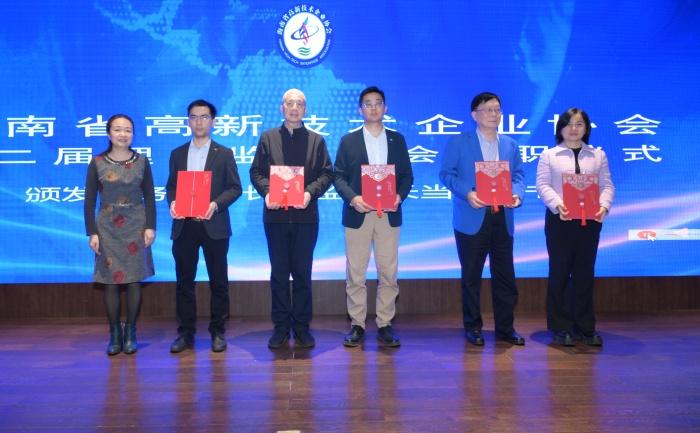 海南省科技厅副厅长蒙巍为新当选常务副会长、监事长颁发证书