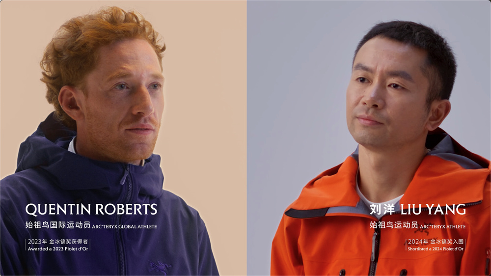 在《一人一山,阿式为攀》短片中,两位始祖鸟运动员,刘洋与Quentin Roberts(2023年金冰镐奖得主)隔空对话。不同于QuentinRoberts在12岁时便开始系统学习阿式攀登技术,刘洋囿于国内不完善的培训体系与信息渠道,在接触攀登后近两年时间,才真正踏上了阿式攀登之路。尽管二人的攀登经历与文化背景大相径庭,但他们对于阿式攀登纯粹的热爱却不谋而合。刘洋表示,“阿式攀登就像艺术创作,过程其实比登顶结果更值得关注。无论何种攀登计划和路线,攀登者都需要自行做出决定并不断验证。这也是阿式攀登的魅力所在。”