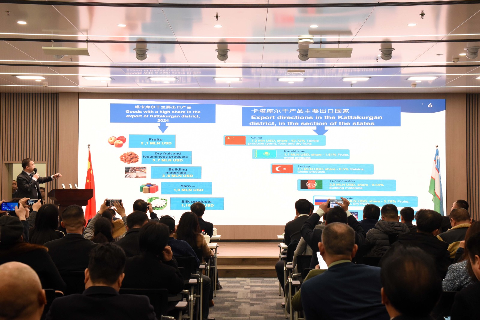 乌兹别克斯坦共和国撒马尔罕州卡塔库尔干区区长纳斯迪诺夫·图尔基诺维奇·贾姆希特先生率团一行6人。参会的中国企业家有160余人。