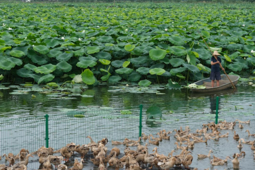 湖北荆州,“鸭藕共生”生态种养示范基地