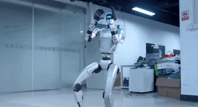 凭着自主研发的硬实力,公司科研人员先用4个月的时间,改变了人形机器人长期以来只能以弯腿屈膝小碎步行走的形态,让人形机器人能够以优雅直膝的步态行走。然后仅用半个月,就让机器人拥有了前空翻的能力。