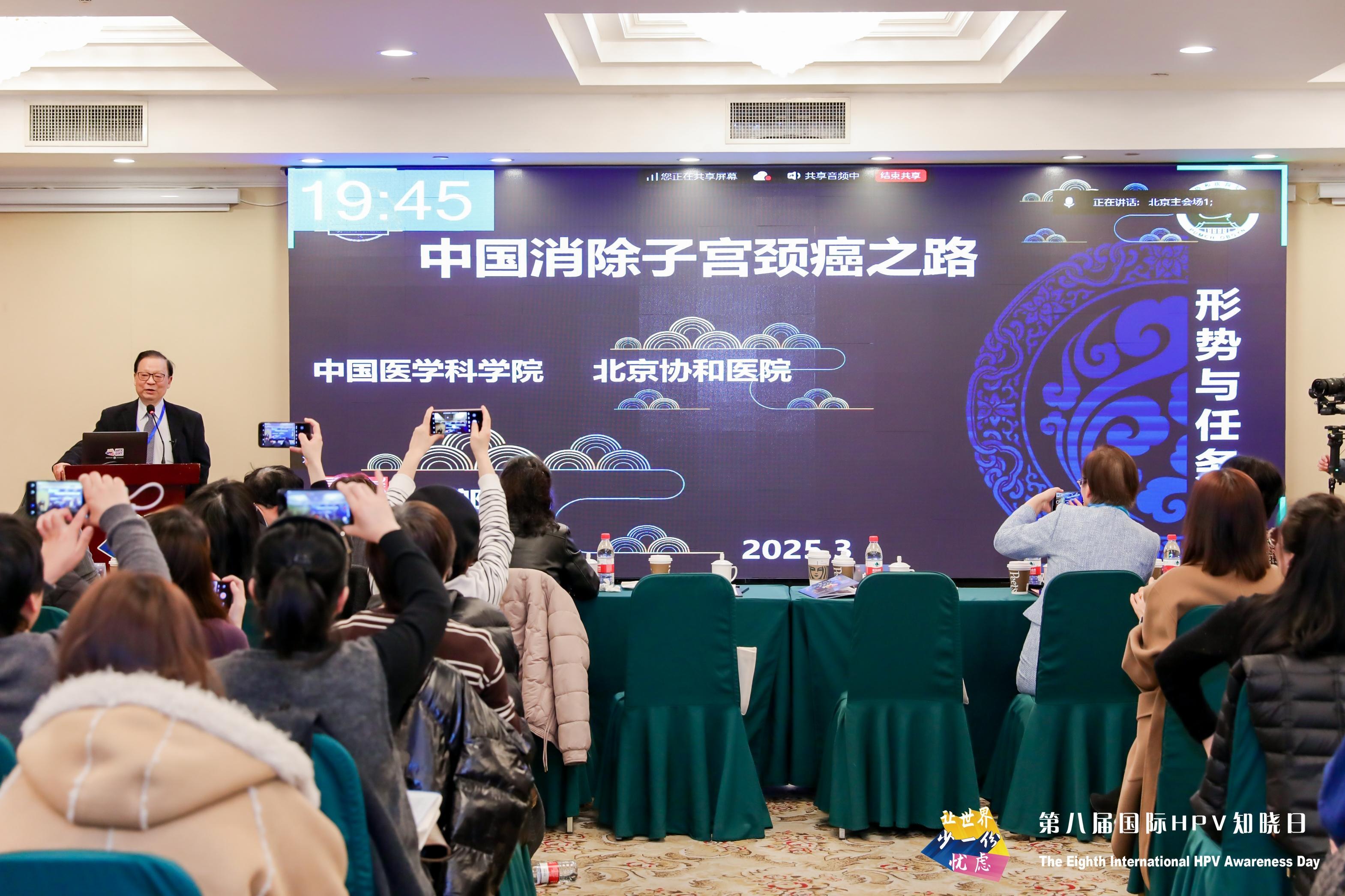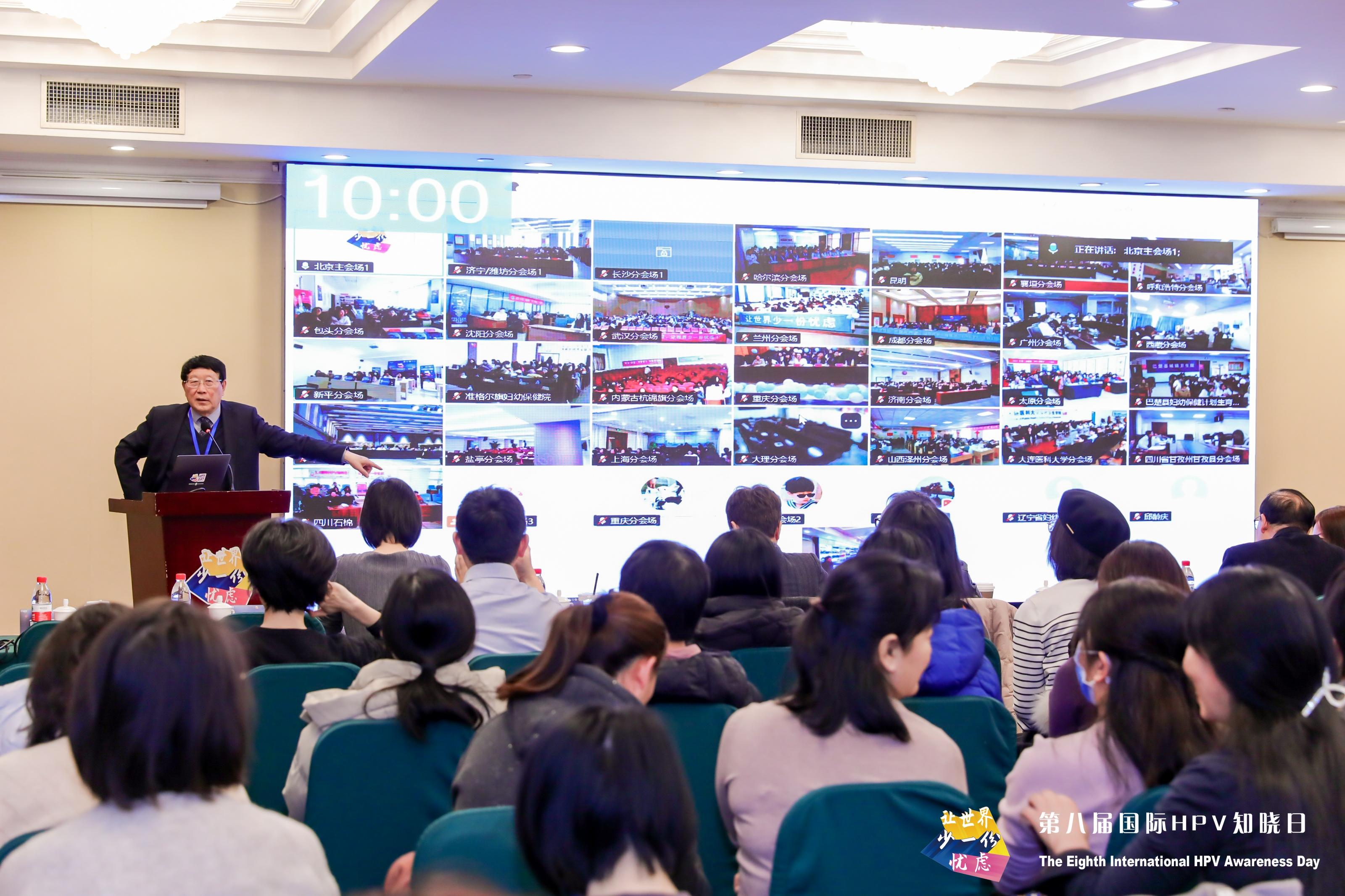据介绍,作为全球消除宫颈癌行动的重要组成部分,中国自2018年起已连续八年开展HPV知晓日科普活动,通过线上线下结合的形式共同响应“让世界少一份忧虑(One Less Worry)”的活动主题,共建覆盖城乡的HPV防治科普网络。在北京主会场,中国工程院院士郎景和、北京协和医院妇产科主任朱兰教授、北京协和医学院群医学及公共卫生学院特聘教授乔友林、中国医学科学院肿瘤医院肿瘤流行病学研究室主任赵方辉教授向社会各界普及HPV防治知识、介绍前沿研究成果。主会场的专题学术讲座,通过分会场连线覆盖全国七个大区的医疗机构。此次活动还向社会各界发布了科普资料,并在社区、校园开展知识竞答等互动宣教,覆盖了医疗工作者、政策制定者以及普通大众等广泛群体。