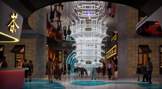 通过数字光影技术,商业空间变身沉浸式长江文化剧场;借助十二座长江沿线城市主题场景营造,实现“千里江陵一日还”的穿越体验——游客漫步其间,可感受重庆洪崖洞的巴渝风情、武汉黄鹤楼与樱花树的浪漫、南京秦淮河的市井烟火,真正做到“一步一景观、一店一故事”。