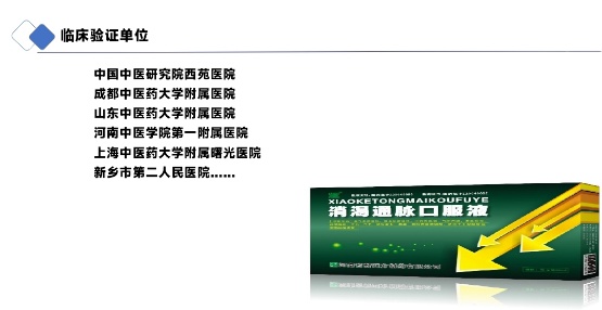 针对的糖尿病并发症:治疗和改善糖尿病眼、足、坏疽先兆等血管相关并发症。