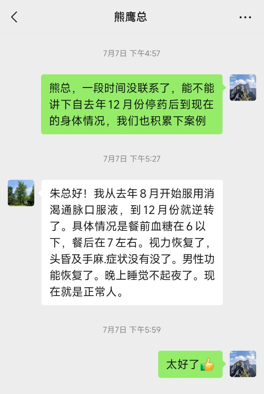 案例一:江西熊总2024年8月初服用消渴通脉口服液,四天腿部溃烂的伤口就结痂,2024年12月全部停药。2025年7月回访,证明自从2024年12月开始逆转后没有反弹。