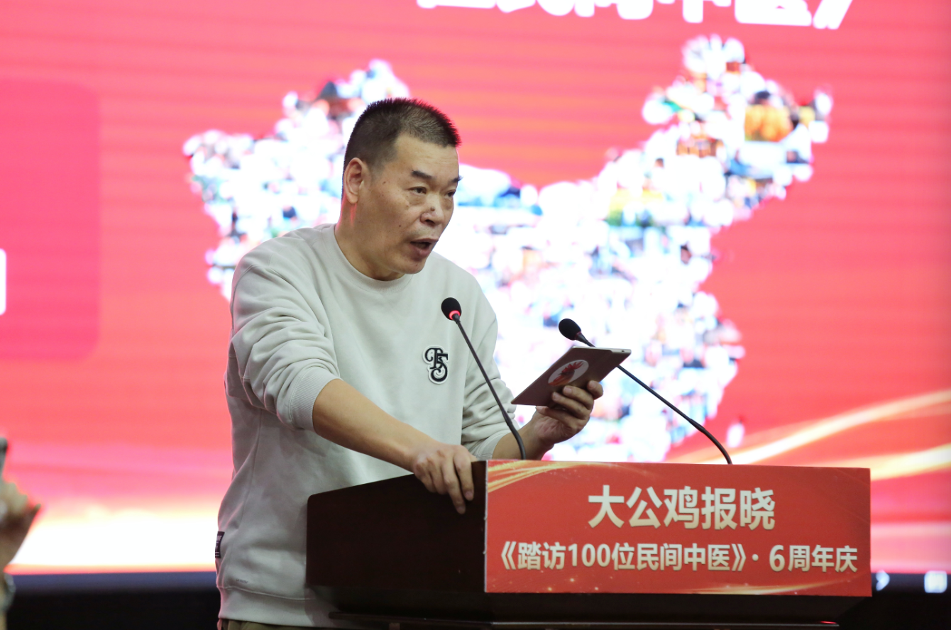 《大公鸡报晓》项目创始人杨东在庆典上分享了六年来的心路历程。2017年,杨东与妻子刘稳,这对心怀传统医学传承使命的夫妻,开启了一项前所未有的民间中医探访之旅。他们自费购置拍摄设备,驾车穿梭于城乡之间,寻找那些散落民间的中医高手。