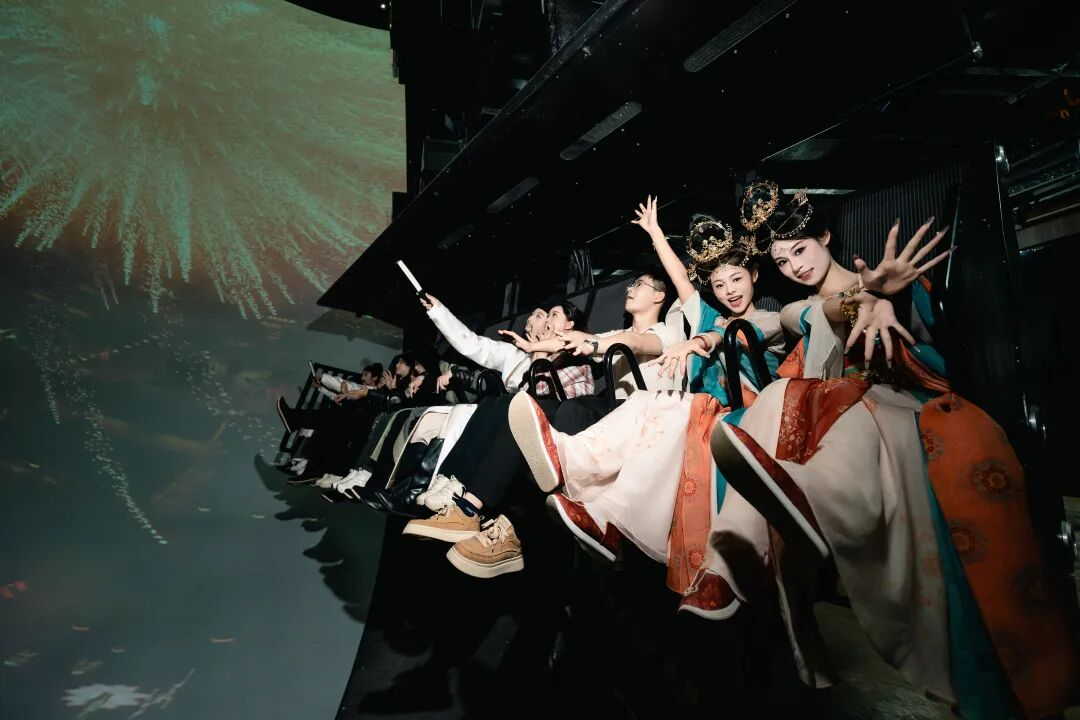 当盛唐历史遇上前沿科技,曲江新区正重新定义文旅体验的边界。曲江飞行剧院开业以来迅速成为现象级打卡地,其核心《长安之上》飞行秀依托专业级4轴动作平台与20米超巨球幕,让游客以“御风视角”俯瞰大明宫威仪、曲江池荷香、天街流光。