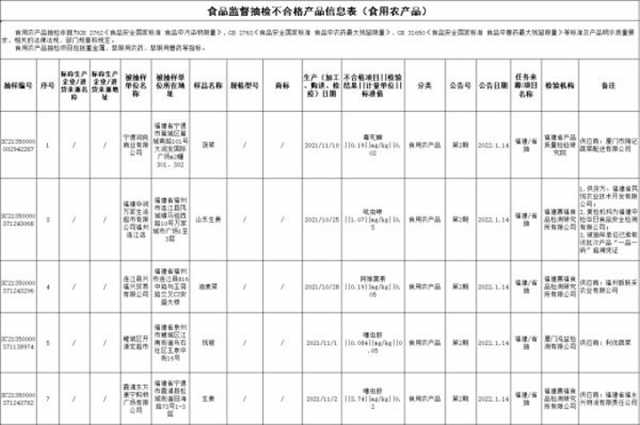 福建华润万家生活超市有限公司福州连江店销售的山东生姜(购进日期为2021年10月25日),吡虫啉不合格,初检机构为福建赛福食品检测研究所有限公司,复检机构为福建中检华日食品安全检测有限公司;
