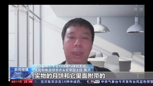 北京邮电大学交互技术与体验系统文化和旅游部重点实验室副主任 陈洪:生活当中,大家可能相隔千里,在遇到节日的时候,大家可以发数字的月饼,代表一个祝福,就像当时的祝福短信和在线发的红包一样,是我们生活数字化的一个表现。
