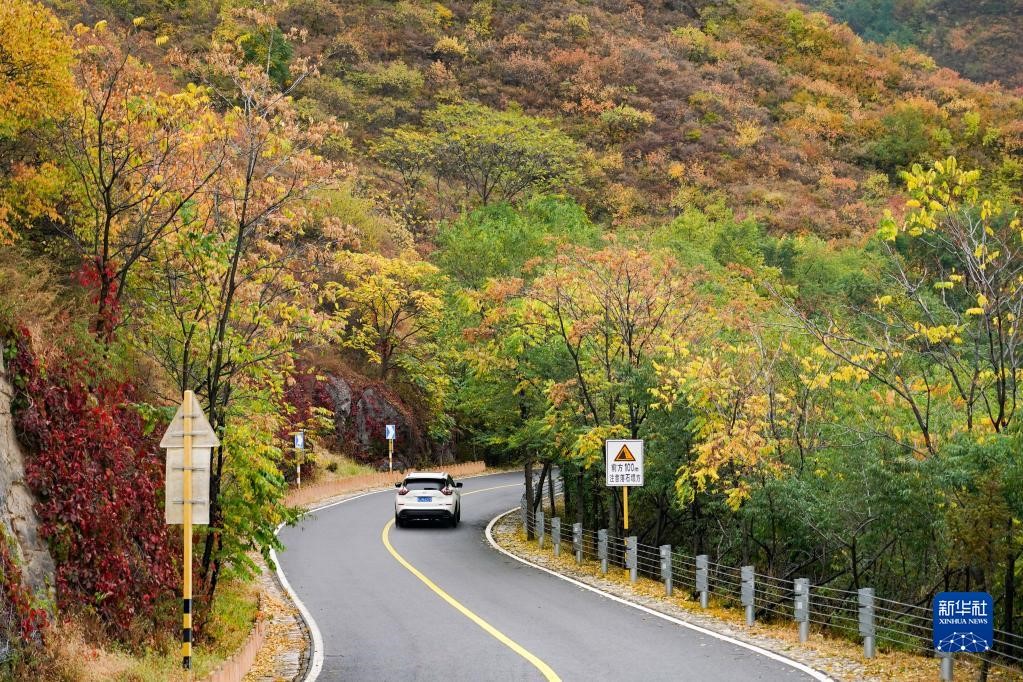 10月2日,游客驾车行驶在百花山国家级自然保护区秋景。新华社记者 彭子洋摄