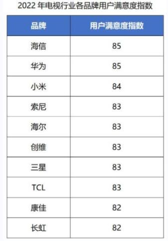 中国经济网北京12月16日讯 (记者 苏兰)记者从中国质量协会获悉,中国质量协会第11次组织开展了电视行业用户满意度监测。本年度监测10个主流电视品牌,其市场占有率达90%以上。调查采用拦截访问、在线调查、舆情监测等方式,涉及全国27个省份100余个城市,共完成有效测评问卷1557份,获取舆情信息543万余条。
