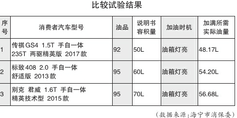 海宁市消保委表示,本次比较试验考虑到安全性因素,没有将消费者汽车油箱内的剩余燃油全部抽空,比较试验产生的数据在客观性方面存在误差。