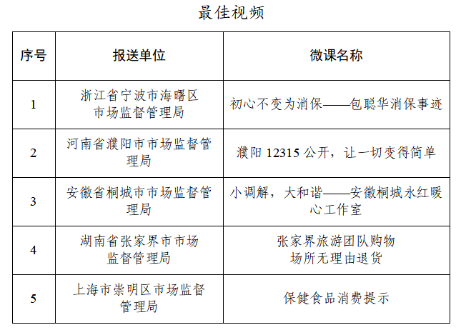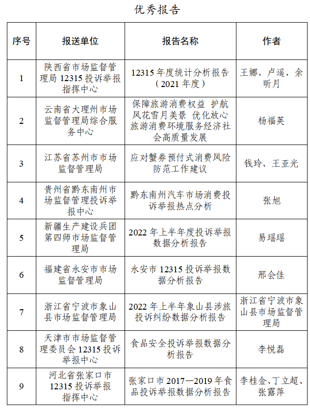 据悉,本次活动共收到地方市场监管部门推荐的140份12315数据分析报告和203件消费者权益保护“微课”短视频作品。入选作品聚焦消费环境建设重点工作,突出地域特色和行业特色,从不同角度展现消保干部积极投身消费者权益保护事业,体现了消费者权益保护和12315创新实践工作成果。这些作品主题鲜明突出、内容实用性强、形式丰富多样,对学习交流消保工作经验做法、提升队伍能力素质、用好投诉举报数据、丰富消费提示宣传内容都具有很好的参考借鉴作用。