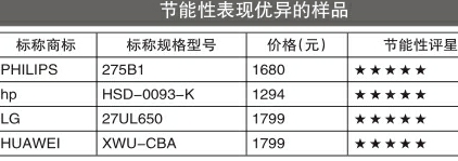 综合来看,有4款显示器在节能性方面表现优异,分别是PHILIPS(标称规格型号:275B1)、hp(标称规格型号:HSD-0093-K)、LG(标称规格型号:27UL650)、HUAWEI(标称规格型号:XWU-CBA)。