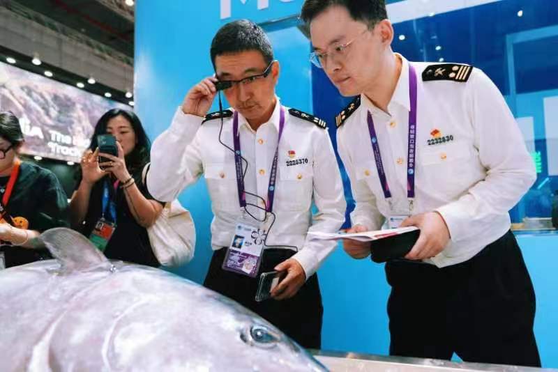 基里巴斯水产品首秀进博会。(上海海关陈兴洲/摄)