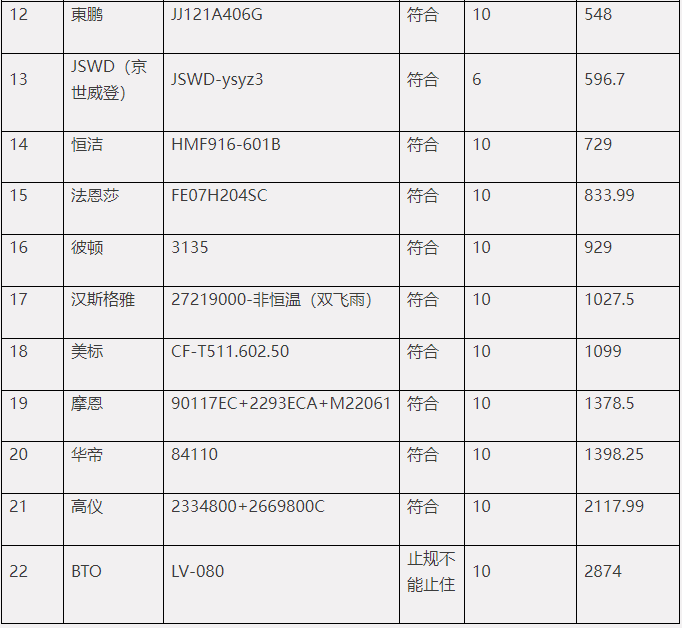 针对“问题样品”,长虹美菱日电科技有限公司反馈,标称品牌长虹卫浴ZWB0727-BY297-3(CH)样品不是该公司授权生产、销售的产品。广东板陶科技有限公司反馈,对标称品牌BTO LV-080样品进行整改、更换该型号不符合要求的配件,并对相关材料供应商严格把关。
