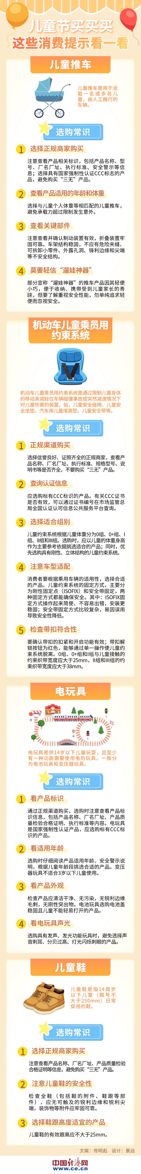 儿童用品质量安全直接影响少年儿童的健康成长,关系着千万家庭的幸福和社会和谐。“六·一”儿童节来了,父母们都会想着给孩子买些什么,来跟着小编看看这些消费提示吧。
