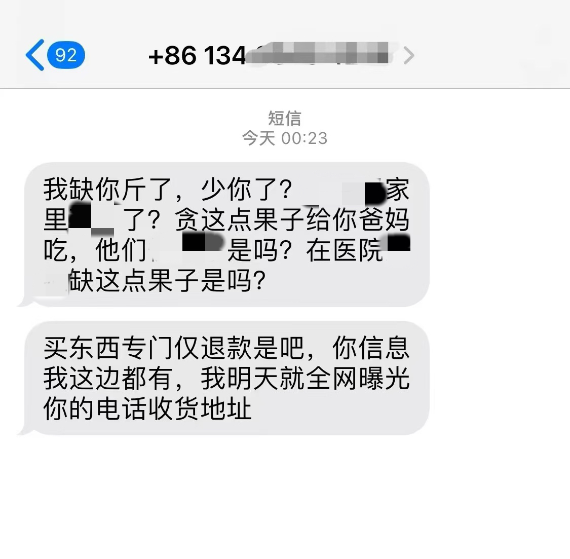 “仅退款”后收到辱骂曝光短信