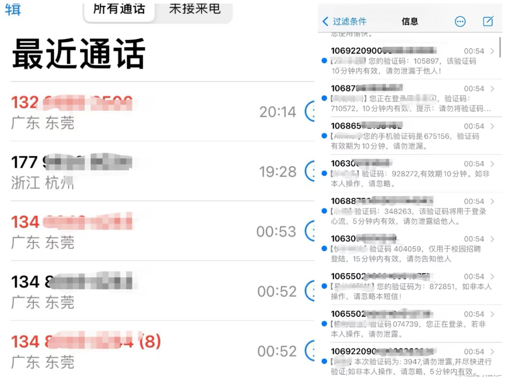 徐女士收到的短信轰炸和电话骚扰。消费者徐女士供图